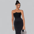 Elegant Strapless Corset Velvet Sheath Maxi Dress