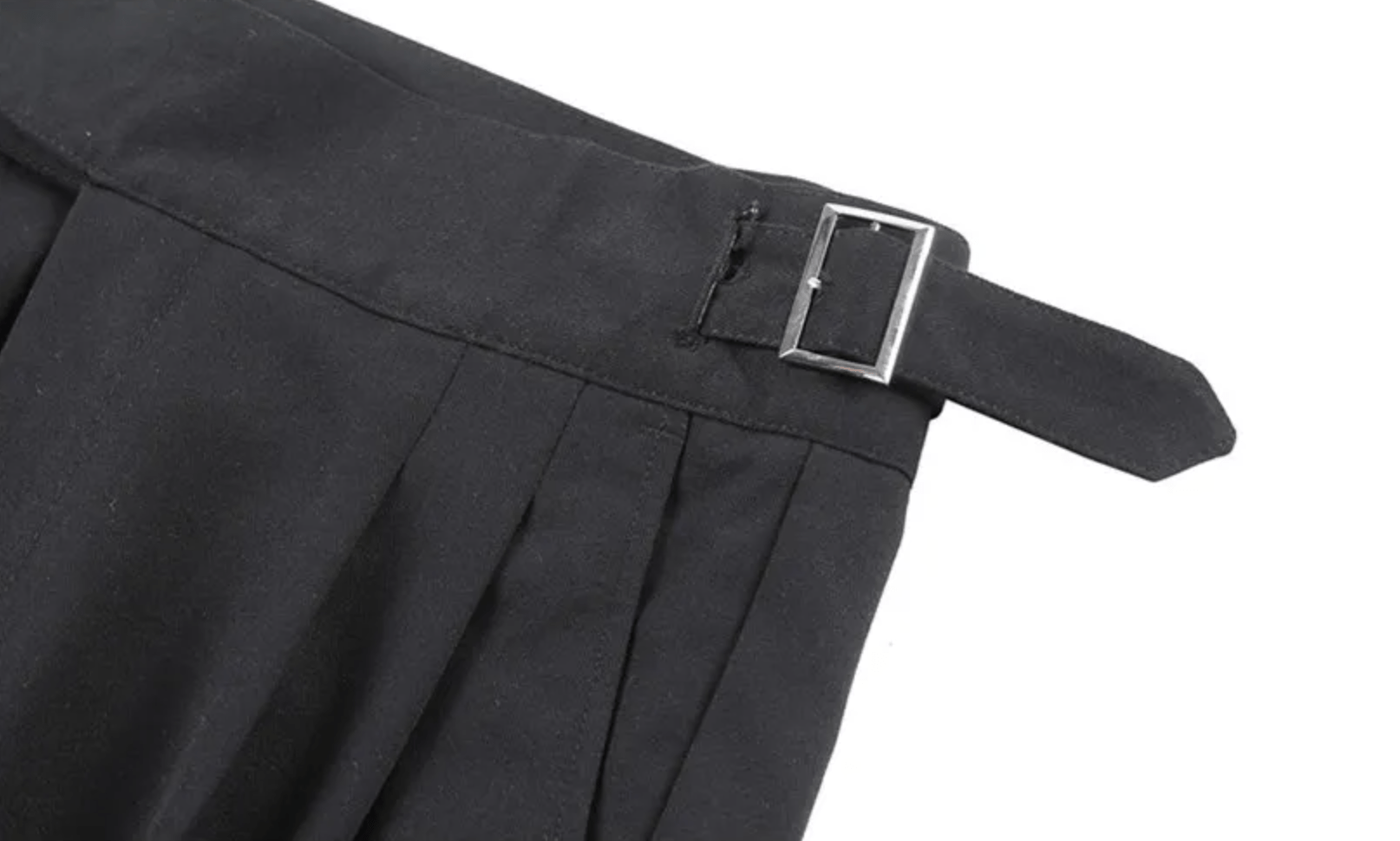 A modern nod to tradition, these Gurkha trousers feature a distinctive double-pleated waistband for an adjustable fit and refined silhouette. With their high-rise cut and tailored finish, they blend classic structure with contemporary ease—perfect for elevated everyday wear or formal occasions.