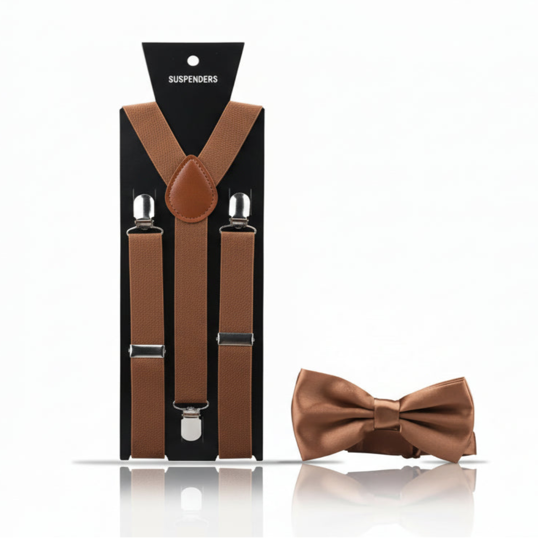 Design: Matching bow tie and suspenders set with polished clip fastenings