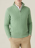 Men’s Cable Knit Half Zip Jumper – Stand Collar, Rib Trim