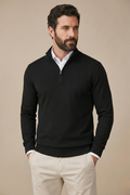 Men’s Half Zip Jumper with Stand Collar and Ribbed Hem