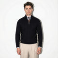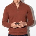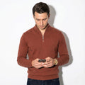 Men’s Half Zip Knitted Jumper with High Collar and Ribbed Trim