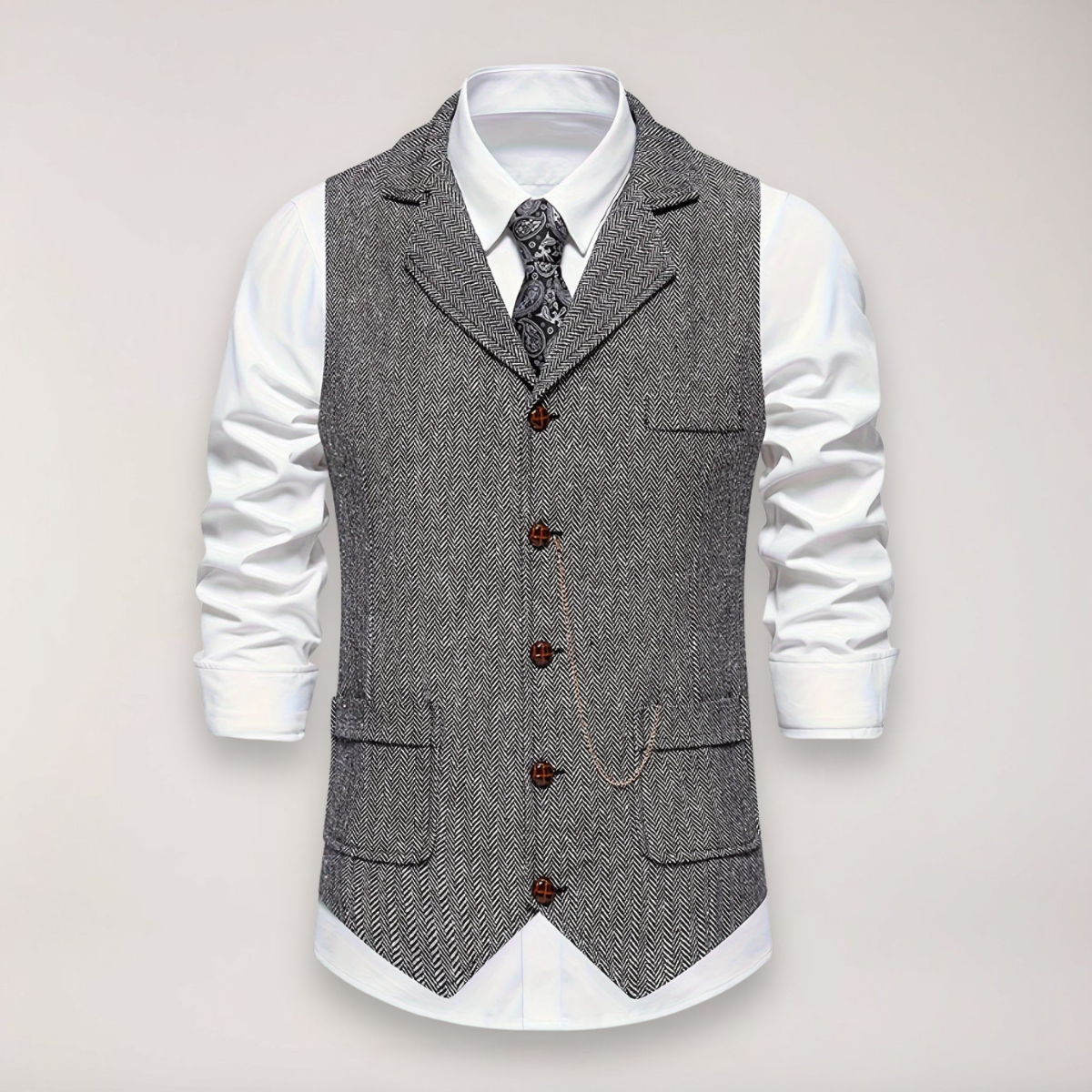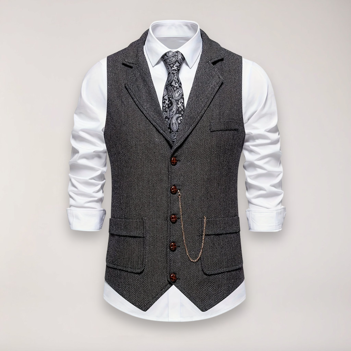 Men’s Herringbone Waistcoat – Classic Fit with Reversed Collar