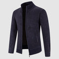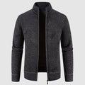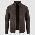 Men’s Zip Cardigan Sweater – Geometric Knit, Mock Neck, Ribbed Trims