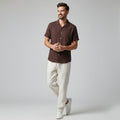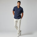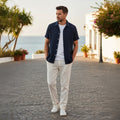 Men's Linen Blend Two Piece Set - Short Sleeve Button-Down Shirt and Drawstring Trousers - Casual Summer Style