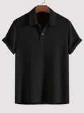 Men's Short-Sleeve Waffle Knit Polo Shirt - Two-Button Placket Spread Collar Casual Style