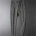 Men's Tapered Trousers - Elasticated Waist - Vertical Pinstripe - Front Slash Pockets - Rear Buttoned Welt Pockets Smart Casual Style
