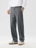 Men's Wide-Leg Straight Trousers - Elasticated Waist - Centre Front Seam - Front Slash Pockets - Rear Buttoned Welt Pocket Smart Casual Style