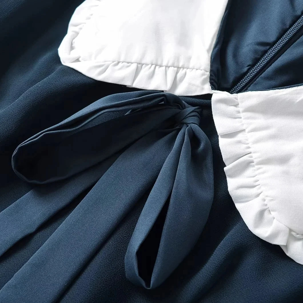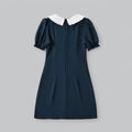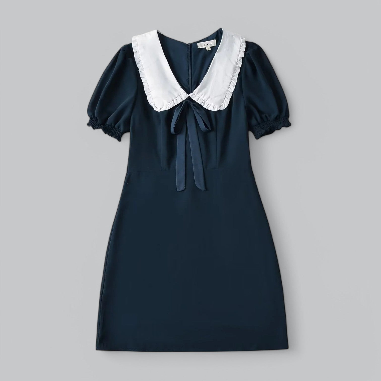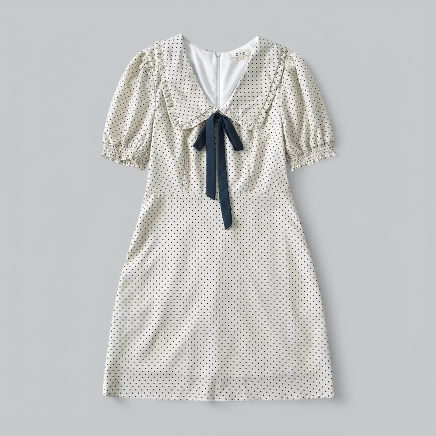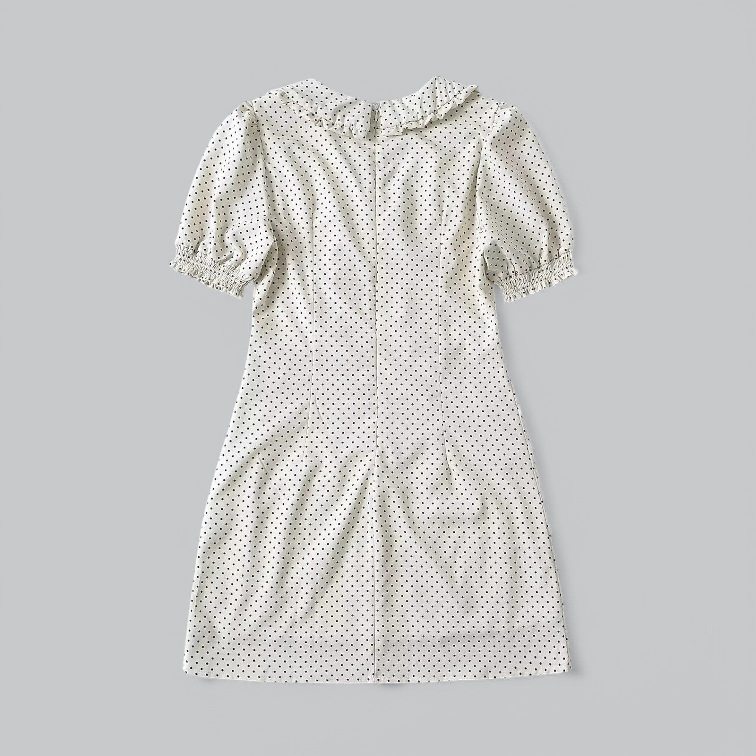 Timeless and effortlessly charming, this polka dot mini dress captures vintage elegance with a modern touch. Designed with a flattering empire waist, puff sleeves, and a classic Peter Pan collar, it creates a soft, feminine silhouette perfect for warm-weather days.