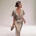 Effortless elegance takes shape in this flowing maxi dress with a twisted V-neckline. The softly draped silhouette flatters the figure while offering ease and movement, making it a refined choice for weddings, celebrations, or evening dinners. The subtle twist detail at the neckline adds sculptural interest, drawing attention without overpowering the overall look.