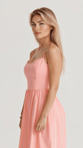 Embrace effortless style with a flattering A-line silhouette and delicate spaghetti straps, crafted for versatility and ease. Finished at a graceful midi length, this flowing design offers both comfort and sophistication, making it perfect for various occasions. Dress it up with heels and jewelry for special events or keep it casual with sandals for a relaxed daytime look.