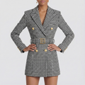 Design: Double-breasted blazer dress with satin lapel and flap details