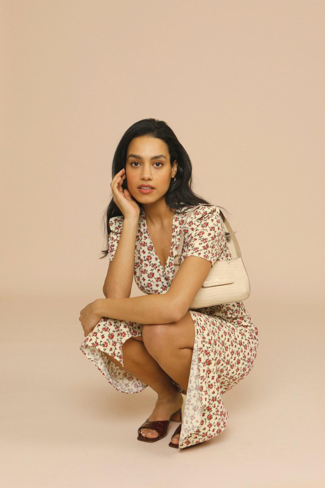 Women’s Floral Midi Dress – V-Neck Garden Party Elegance