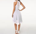 Women’s Halter Midi Dress – Flared Skirt with Ruffle Detailing