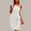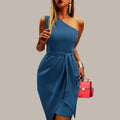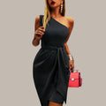 Women’s One Shoulder Midi Evening Dress – Asymmetric Fit with Waist Detail