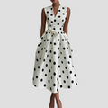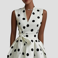 Women’s Polka Dot Midi Dress – Wrap Front, Tie Waist, Sleeveless