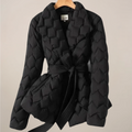 Women’s Puffer Jacket – Quilted Design – Belted Waist – Elegant Fit