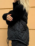 Women’s Quilted Jacket – Textured Sleeves, Funnel Neck, Zip Front