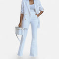 A striking balance of strength and sophistication, this coordinated two-piece set brings a modern approach to classic tailoring. The structured double-breasted blazer pairs effortlessly with sleek flared trousers, creating a powerful silhouette that transitions seamlessly from boardroom to evening occasions. Designed for women who value both elegance and authority, it is a timeless ensemble that speaks volumes without saying a word.