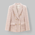 Women's Classic Double-Breasted Pink Tweed Blazer