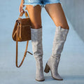 Women's Knee High Boots - Block Heel Pointed Toe Pull-On Style - Suede Finish