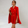 Cape Blazer Mini Dress with Belt and Gold Button Detail