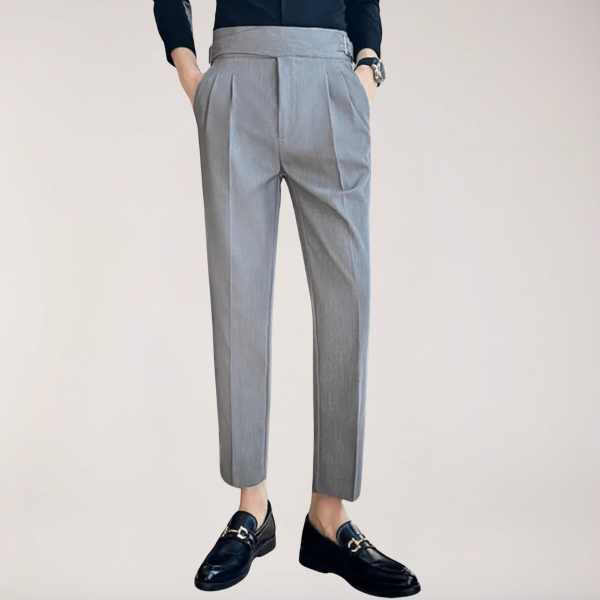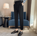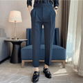High Waisted Pleated Men's Formal Straight Fit Trousers