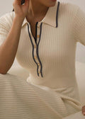 Midi Dress with Polo Collar - Elegant Women's Knitted Dress