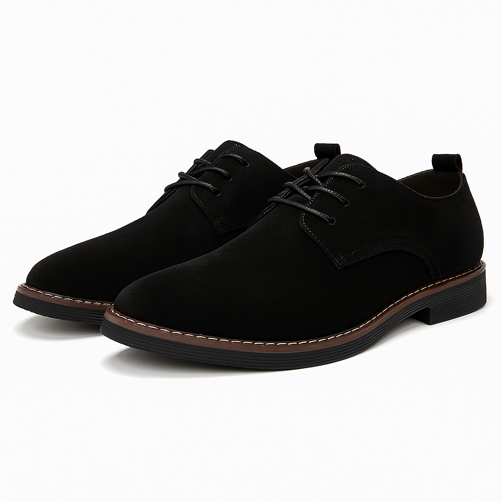 Clean, modern and endlessly versatile, these black derby shoes deliver a sharp profile with a softly matte finish, open-lace construction and neat contrast welt stitching. A lightweight, low-heel sole offers day-long comfort and grip, while the streamlined round toe keeps the look refined for work, dinners and smart-casual weekends. Pair with tailoring for a polished edge or dress them down with dark denim—either way, they unlock effortless, put-together style.
