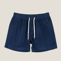 These men’s shorts feature a textured corduroy surface with a relaxed silhouette and mid-thigh length. Designed with an elasticated waistband and adjustable drawstring, they offer a flexible fit. The design is finished with side pockets and subtle stitch detailing along the seams for a clean, structured look.