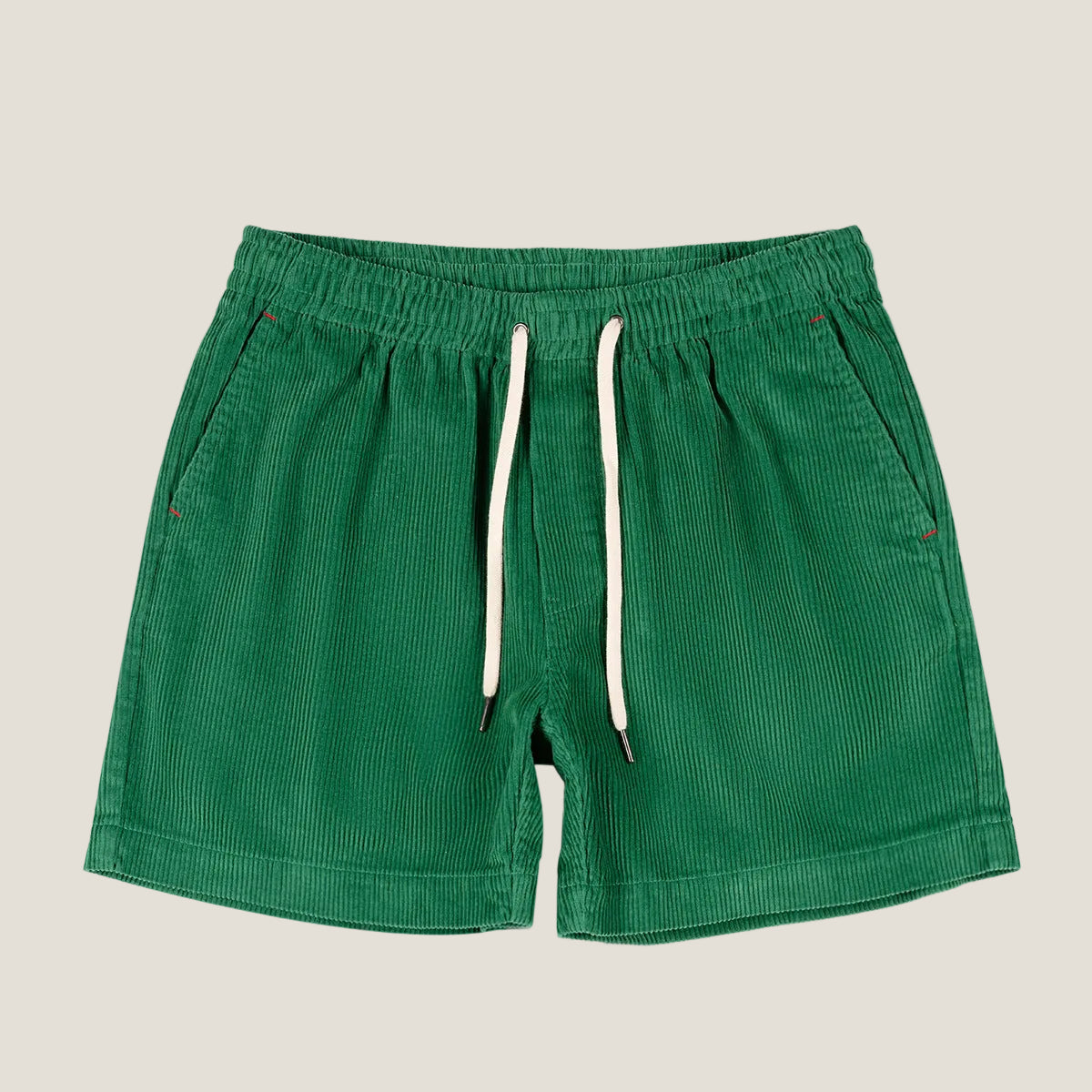 Design: Corduroy shorts with elastic waistband, adjustable drawstring and side pockets