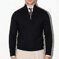Men’s Half Zip Knitted Jumper with High Collar and Ribbed Trim