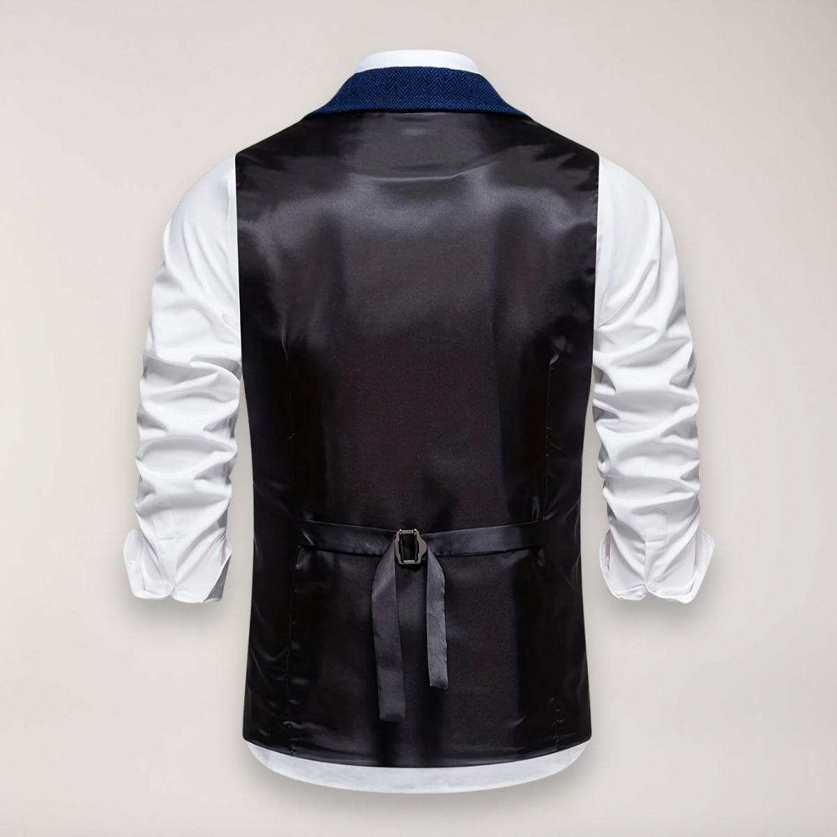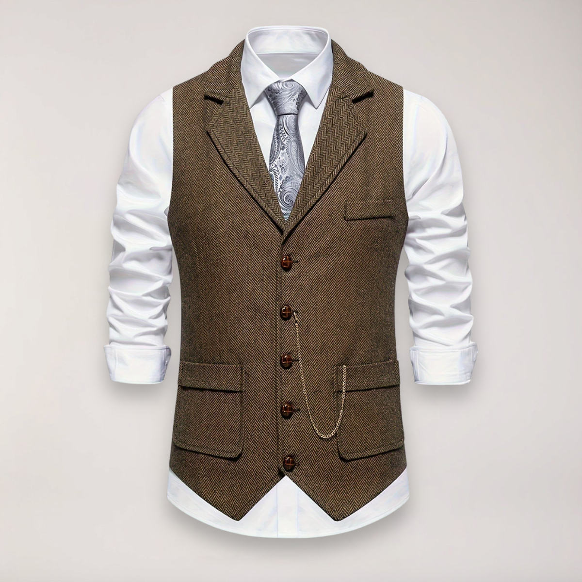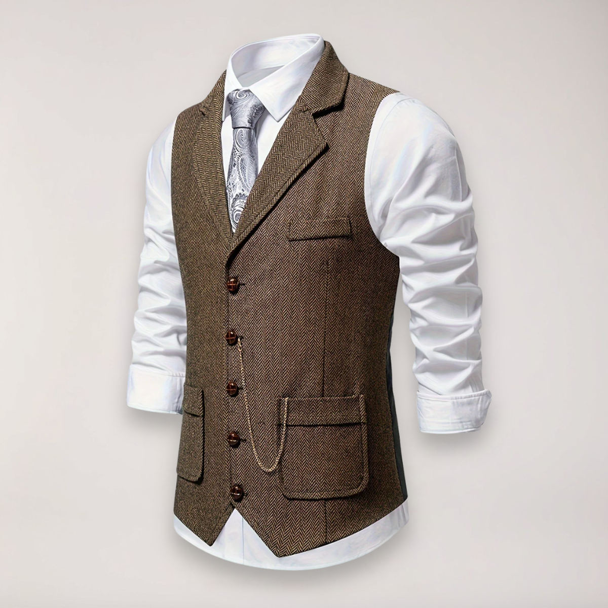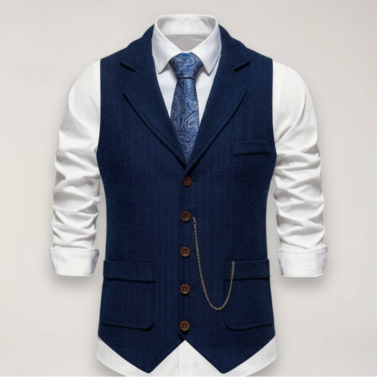 Men’s Herringbone Waistcoat – Classic Fit with Reversed Collar