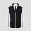 Refined and versatile, this knitted gilet adds a polished edge to everyday layering. Designed with a full zip front and contrast-trim detailing, it pairs effortlessly over shirts for a sharp business-casual look or weekend style. The ribbed hem ensures a clean, structured fit that complements tailored or relaxed ensembles alike.