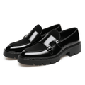 A sharp pair designed to stand out, these loafers combine the classic monk strap detail with a sleek slip-on silhouette. Finished with dual silver buckles and a polished profile, they balance sophistication and edge, making them a versatile choice for both formal wear and contemporary smart-casual looks.