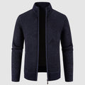 Men’s Zip Cardigan Sweater – Geometric Knit, Mock Neck, Ribbed Trims