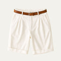 Men's Chino Shorts - Double Pleat - Leather Belt - Turnup Cuff