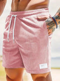 Men's Corduroy Drawstring Shorts - Elasticated Waist Above-Knee Relaxed Fit - Casual Summer Style