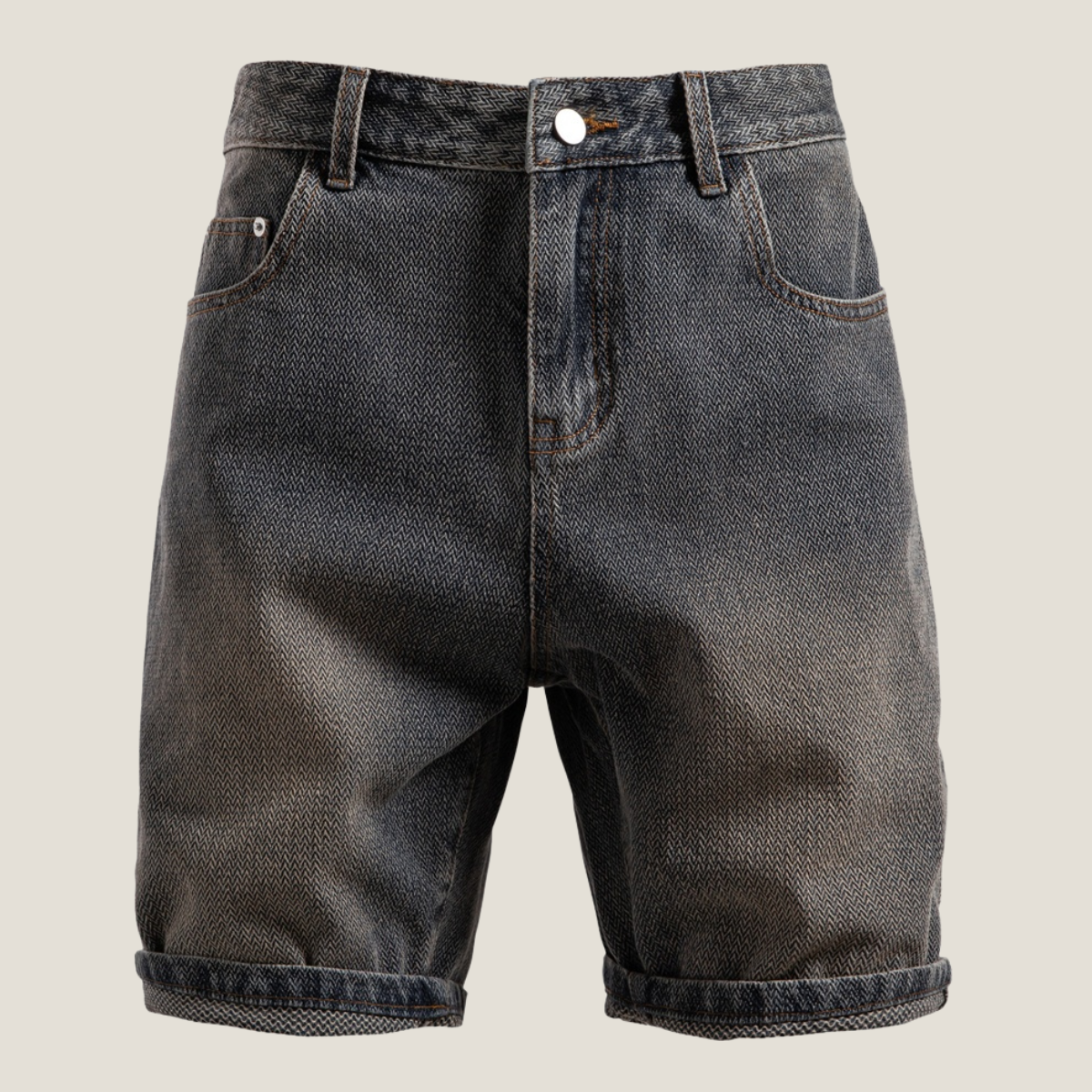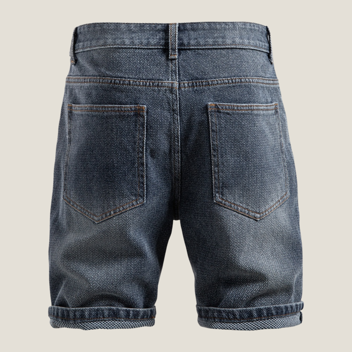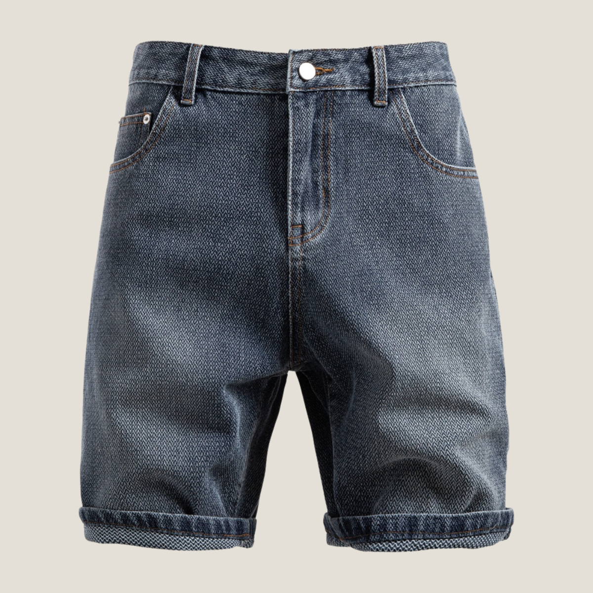 Men's Jean Shorts - Textured Denim - Zip Fly - Rolled Cuff Hem