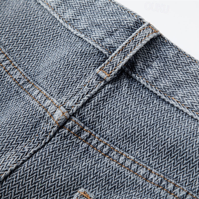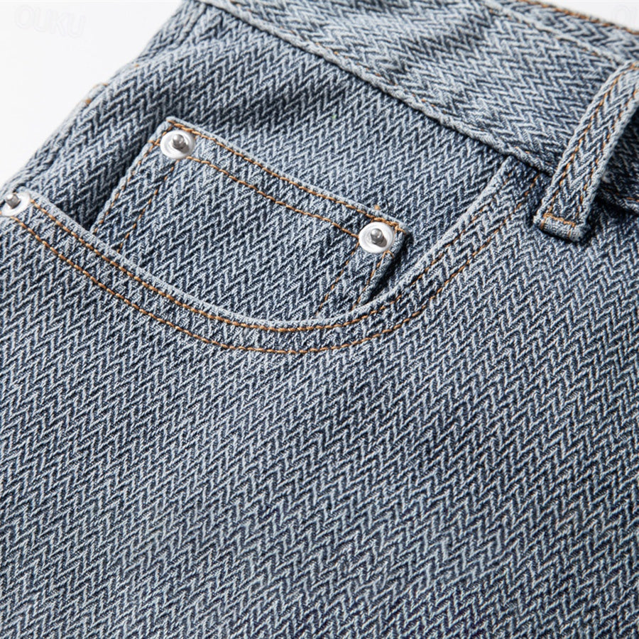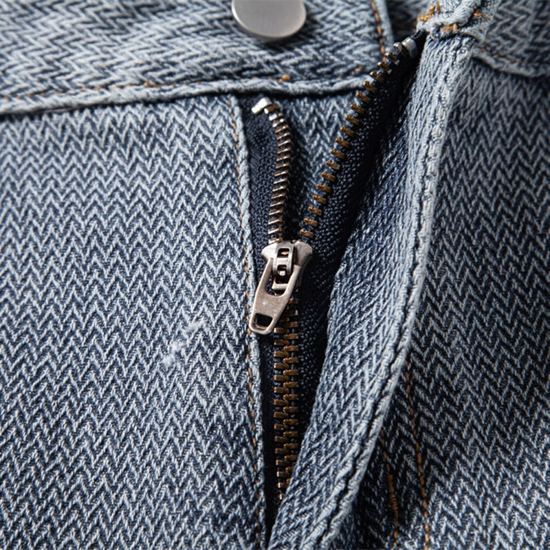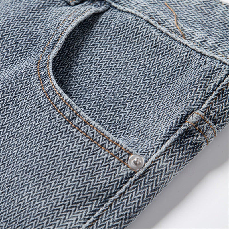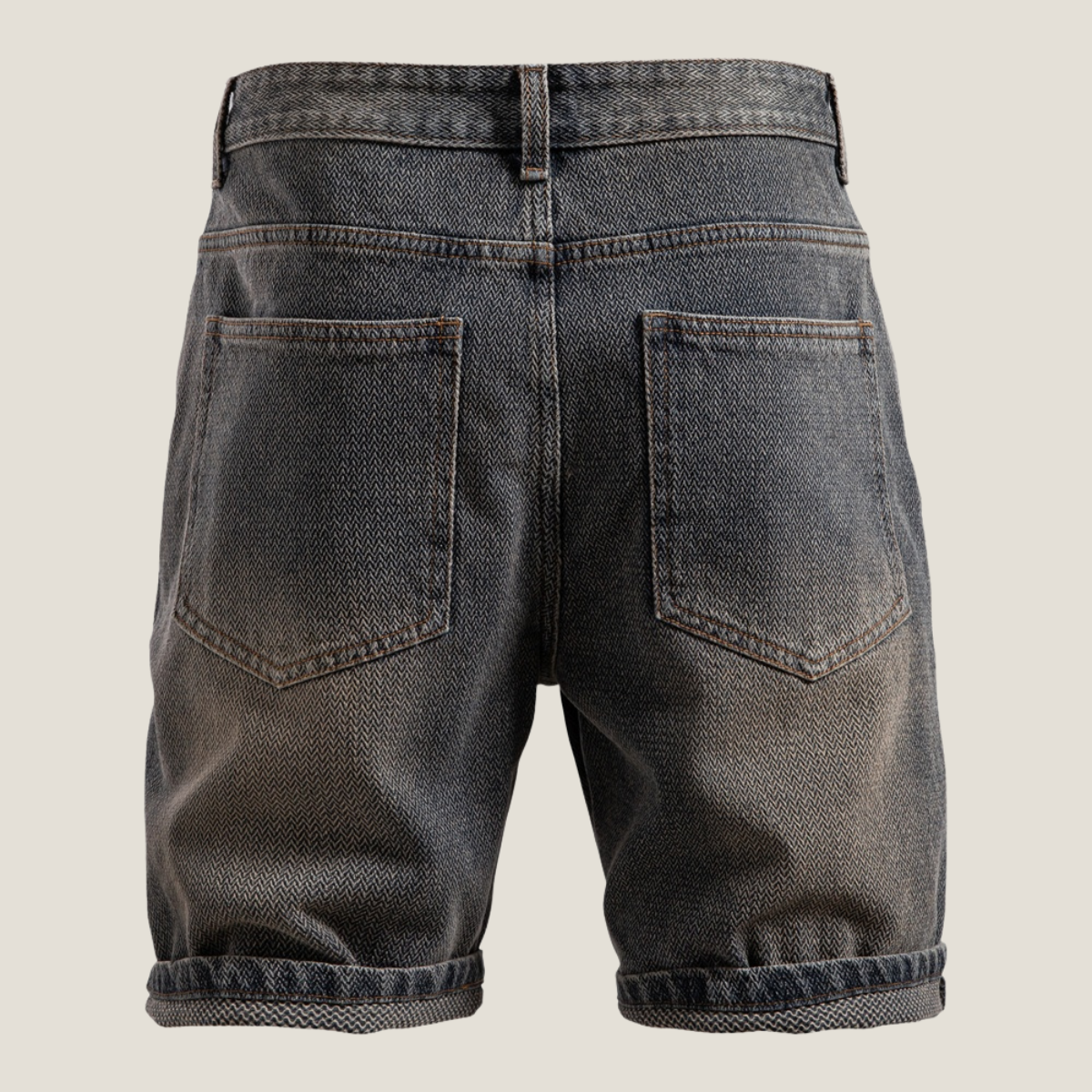Men's Jean Shorts - Textured Denim - Zip Fly - Rolled Cuff Hem