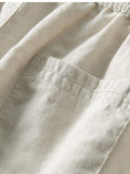 Men's Linen Blend Short-Sleeve Shirt - Stand Collar Button-Front Casual Summer Style