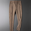 Men's Tapered Trousers - Elasticated Waist - Vertical Pinstripe - Front Slash Pockets - Rear Buttoned Welt Pockets Smart Casual Style