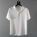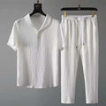 Men's Two Piece Set - Textured Short-Sleeve Shawl Collar Top and Tapered Elasticated Drawstring Trousers Casual Smart Style