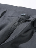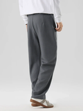 Men's Wide-Leg Straight Trousers - Elasticated Waist - Centre Front Seam - Front Slash Pockets - Rear Buttoned Welt Pocket Smart Casual Style