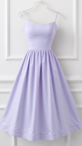 Design: A-line silhouette, spaghetti straps, flowing midi length
