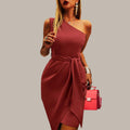 Women’s One Shoulder Midi Evening Dress – Asymmetric Fit with Waist Detail
