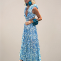 Women’s Plunging V-Neck Ruffled Sleeves Maxi Dress with Cut-Out Waist and High Slit