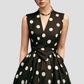 Women’s Polka Dot Midi Dress – Wrap Front, Tie Waist, Sleeveless