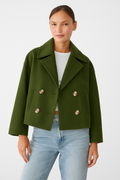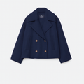 Women’s Short Coat – Wide Lapels, Two-Row Button Front, Cropped Boxy Fit