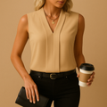 Refined and understated, this sleeveless formal top is designed to elevate any sophisticated ensemble. The structured yet fluid cut drapes elegantly over the body, creating a flattering silhouette that’s both polished and feminine. Perfect under a blazer or worn on its own, this piece transitions seamlessly from business meetings to formal dinners with timeless ease.
